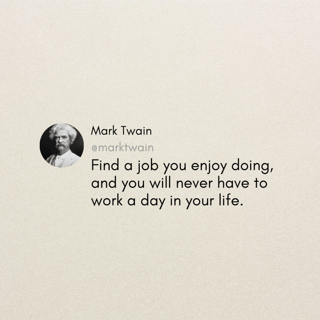 While neither Twain, nor Confucius actually made the statement, their memes circulate the internet in fancy images – a myth of purposeful work and happiness.